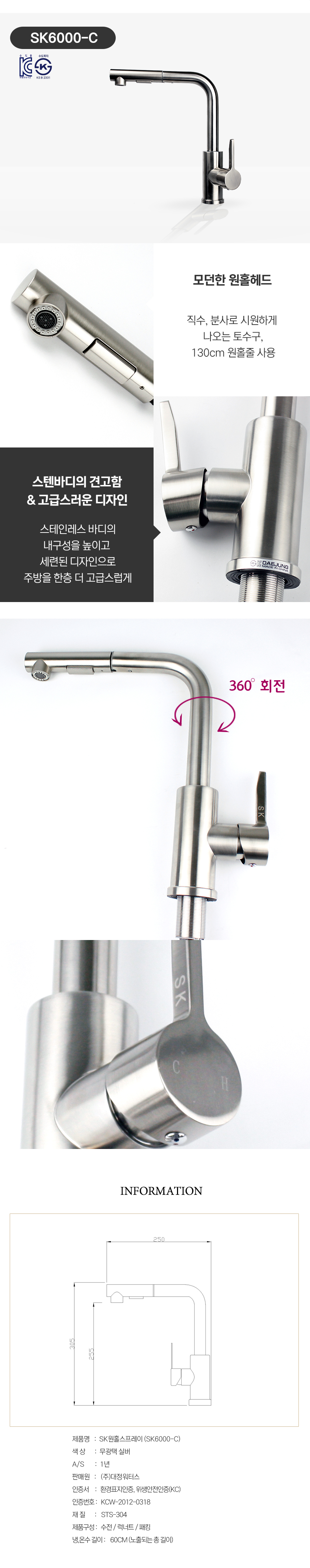② 모든 수전 제품은 수압 테스트를 거쳐 출고되기 때문에 제품 내부에 잔량의 물이 남아있을 수 있습니다.
