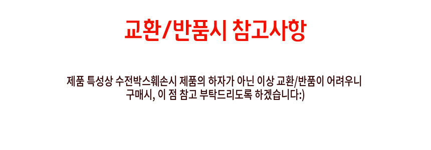 • - 불량제품 또는 제품에 의한 문제 발생시 전액(해당 제품) 교환/환불해드립니다.