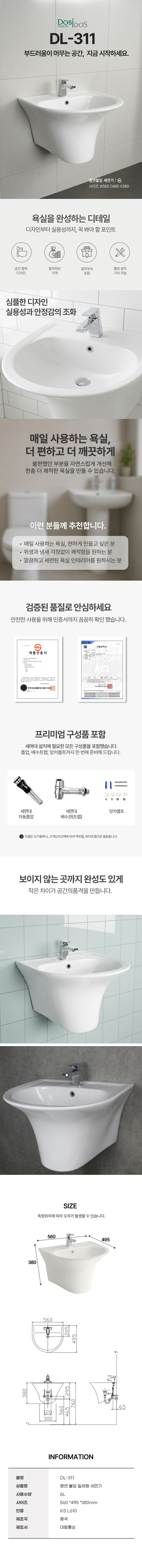 HOME > 도기 > 세면기 > 대림바스 > 대림통상 DL-311 세면대 세면기 도기 긴다리 반다리세면기