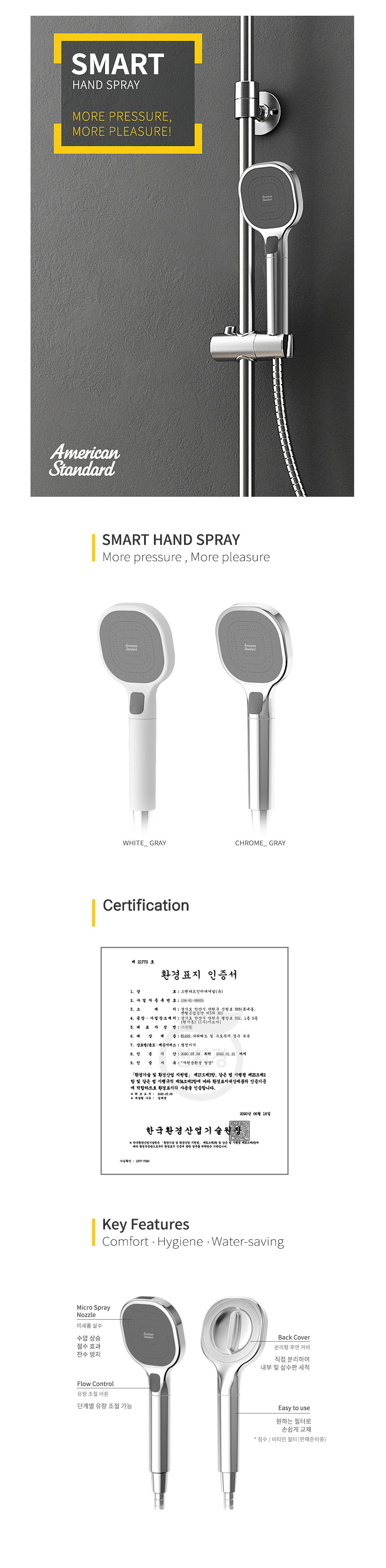 HOME > 전체상품 > 아메리칸스탠다드 샤워헤드 샤워기헤드 수압상승 유량조절 스마트 필터 화이트 그레이