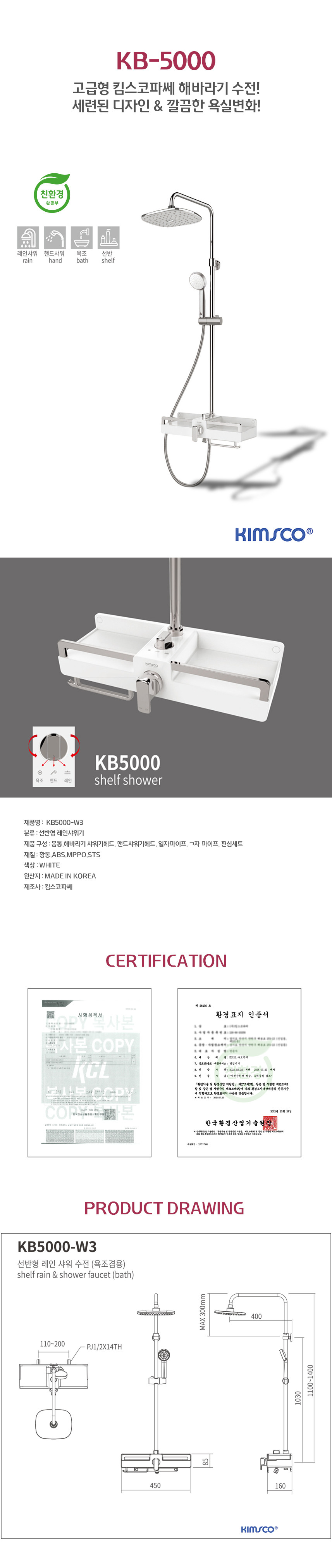 [출장설치가능] 국산 킴스코파쎄 프리미엄 해바라기샤워기 해바라기수전 KB5000-W3