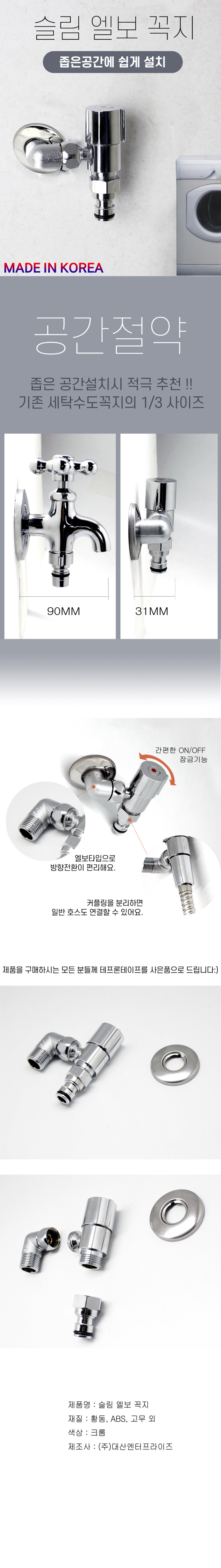 국산 수도꼭지 교체 납작 슬림수도꼭지 수전 베란다 좁은세탁실 세탁기용 간편설치