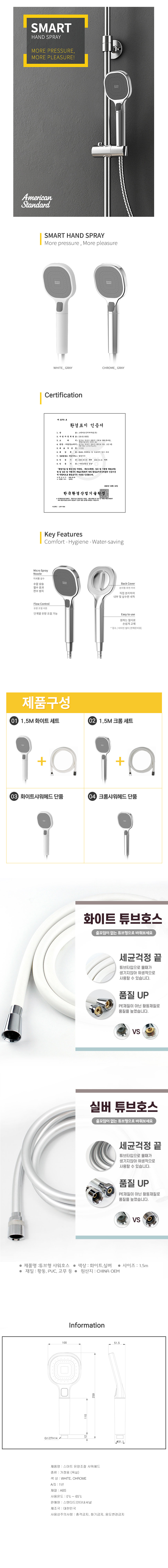 HOME > 전체상품 > 아메리칸스탠다드 샤워기헤드 수압상승 스마트필터 튜브샤워줄 샤워호스 1.5M 화이트세트
