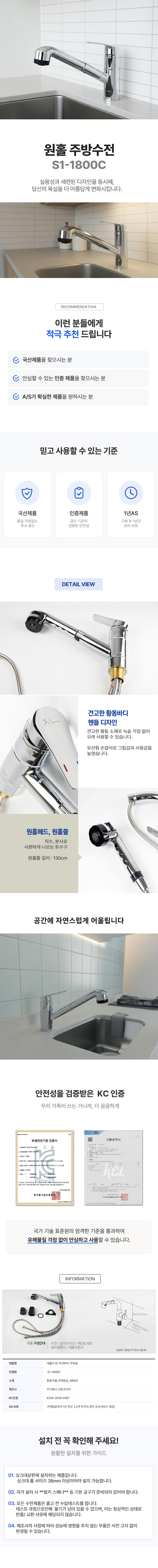 HOME > 전체상품 > (출장설치가능) 국산 싱크대수전 싱크대수도꼭지 주방원홀수전 S1-1800