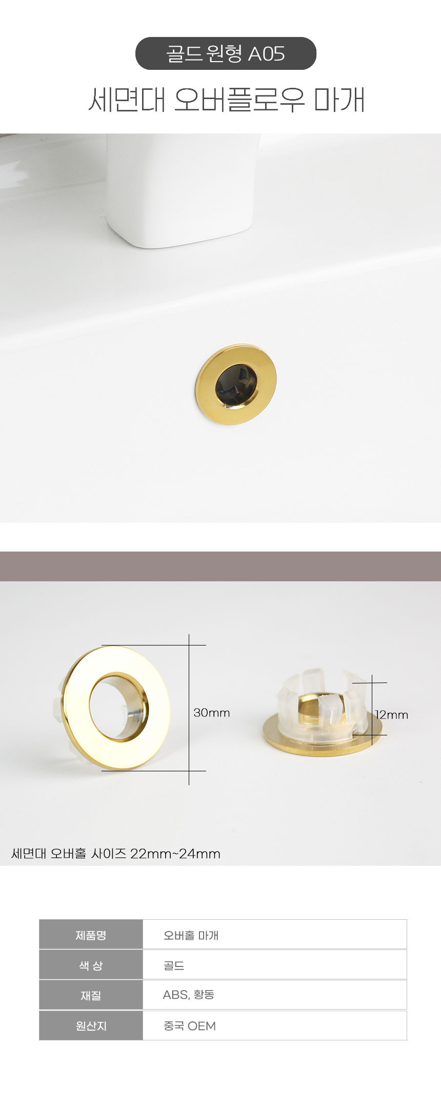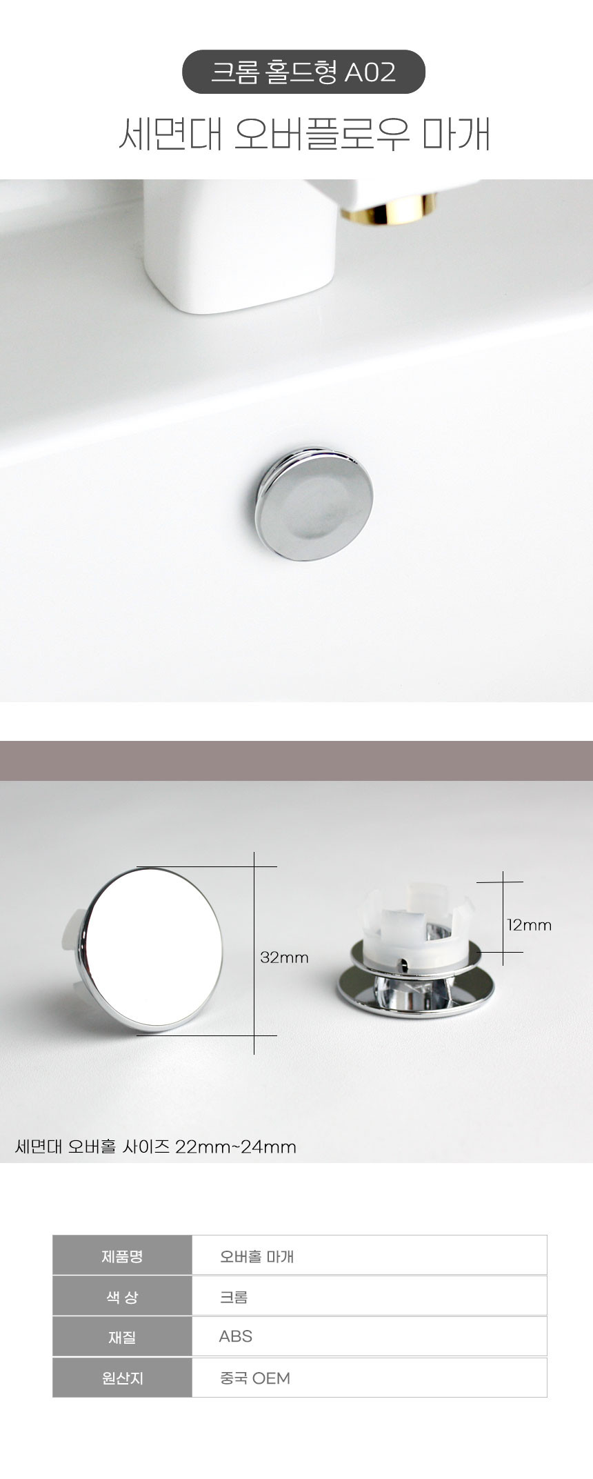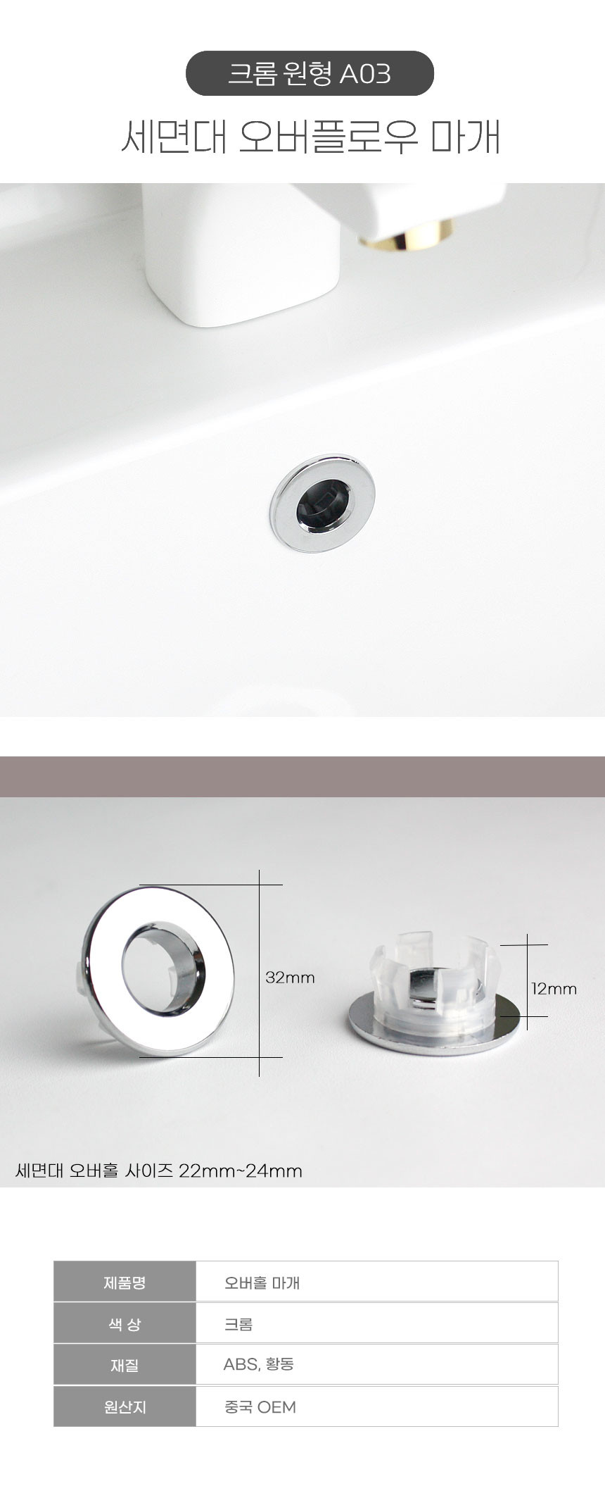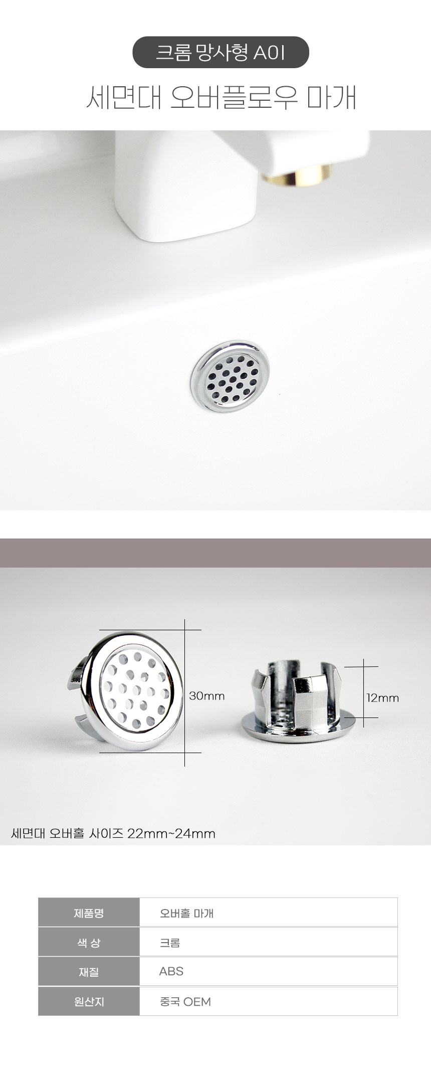 HOME > 전체상품 > 세면대 마개 오버플로우캡 오버홀캡 망사형
