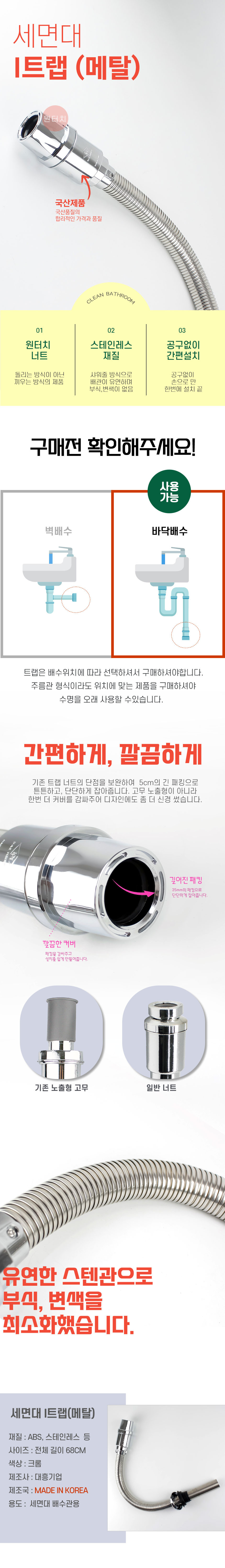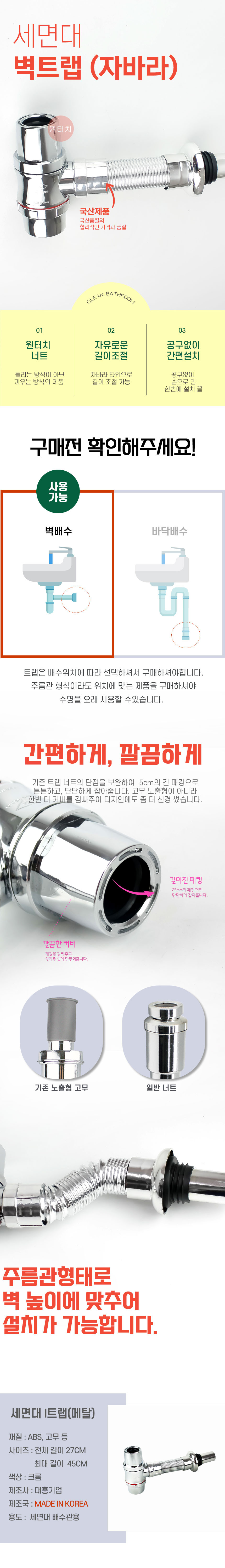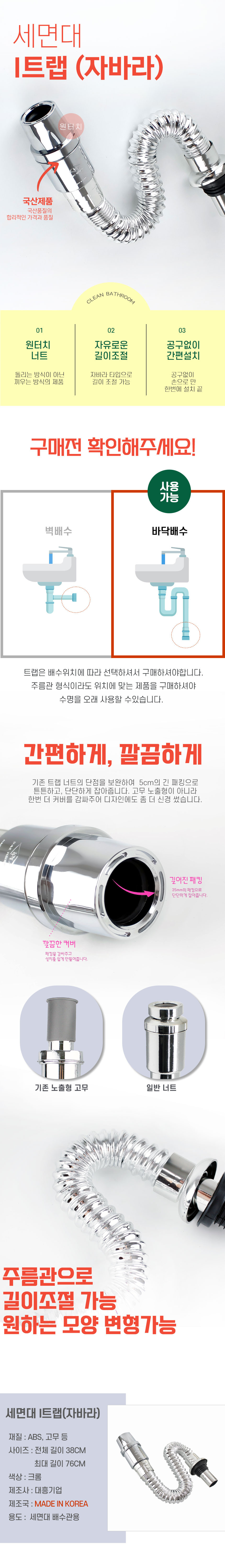 세면대부속품 세면대배수관 원터치설치 세면기I트랩자바라
